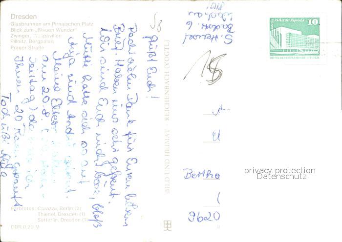 72325164 alte Postkarte DRESDEN Elbe Glasbrunnen Blick zum Blauen Wunder Zwinger Wallpavillon Pillnitz Bergpalais Prager Str postalisch gelaufen Erhaltung siehe scans KatCode: 11110014262000
