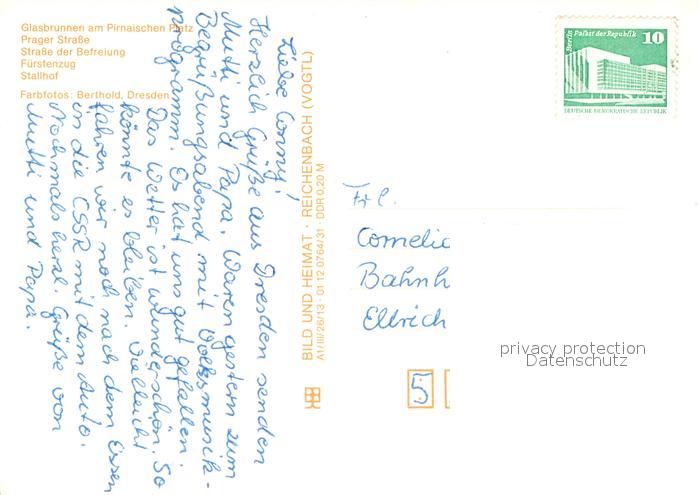 73127613 alte Postkarte DRESDEN Elbe Glasbrunnen Pirnaischer Platz Prager Strasse Fuerstenzug Stallhof postalisch gelaufen Erhaltung siehe scans [KathaD81] KatCode: 11110014262000