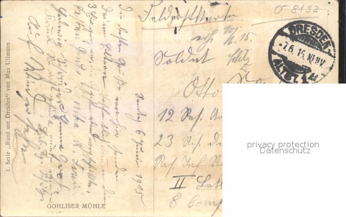 42343985 alte Postkarte DRESDEN Elbe Gohliser Windmuehle postalisch gelaufen Feldpost Erhaltung siehe scans KatCode: 11110014262000