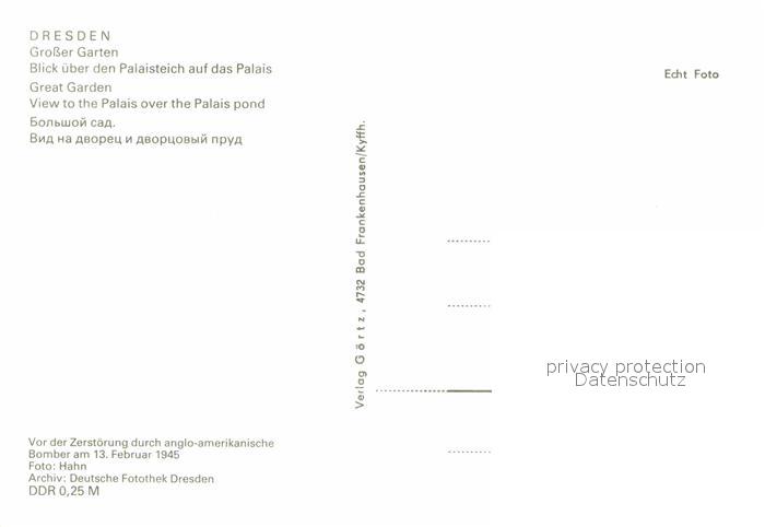 72901178 DRESDEN Elbe Grosser Garten Palaisteich Palais postalisch nicht gelaufen Erhaltung siehe scans [PaolaD17] KatCode: 11110014262000