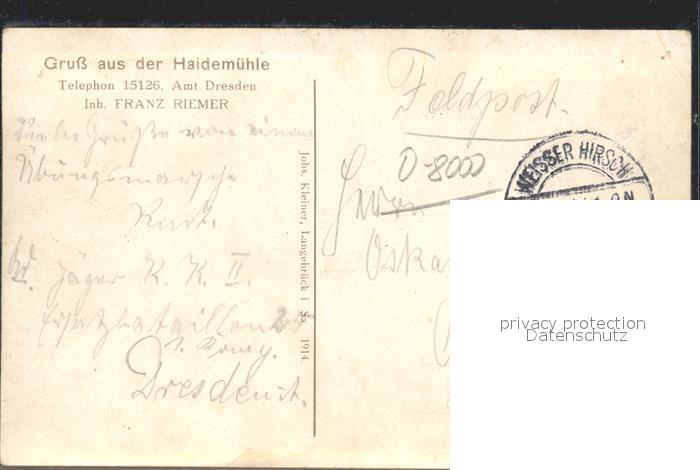 42317137 alte Postkarte DRESDEN Elbe Haidemuehle postalisch gelaufen Feldpost Erhaltung siehe scans KatCode: 11110014262000
