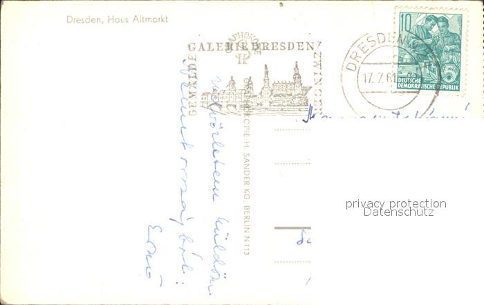 71867925 alte Postkarte DRESDEN Elbe Haus Altmarkt postalisch gelaufen Erhaltung siehe scans KatCode: 11110014262000