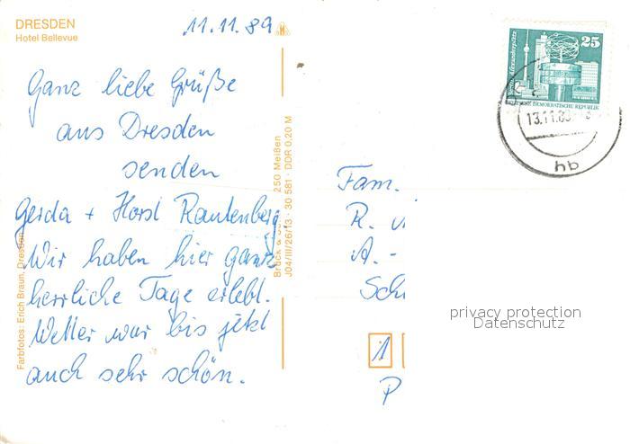 73740072 DRESDEN Elbe Hotel Bellevue postalisch gelaufen Erhaltung siehe scans [FriedD77] alte Postkarte Frie Katcode 11110014262000