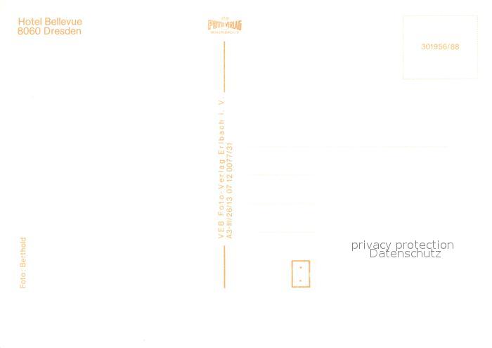 73739780 DRESDEN Elbe Hotel Bellevue postalisch nicht gelaufen Erhaltung siehe scans [WerneD78] Wern Katcode 11110014262000