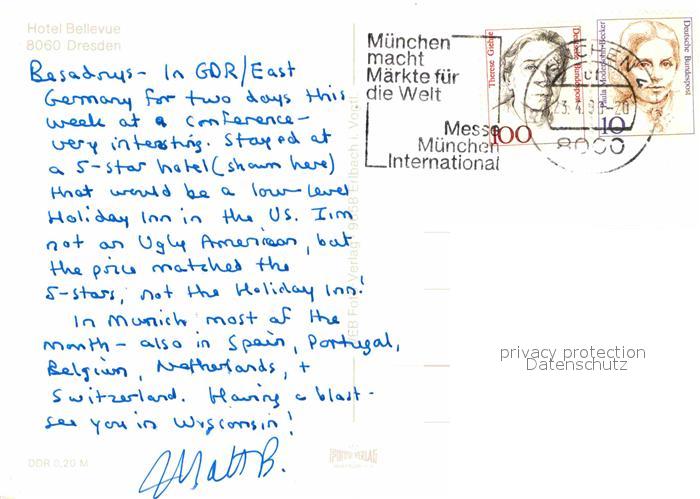 72849508 alte Postkarte DRESDEN Elbe Hotel Bellevue postalisch gelaufen Erhaltung siehe scans [KathaD81] KatCode: 11110014262000