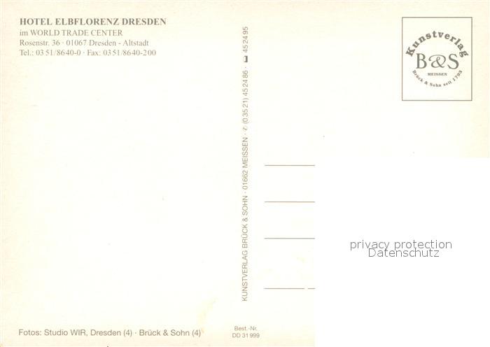 73741212 Dresden Elbe Hotel Elbflorenz Dresden im World Trade Center Foyer Freiterrasse Gastraum Zimmer postalisch nicht gelaufen Erhaltung siehe scans [WerneD78] KatCode: 11110014262000