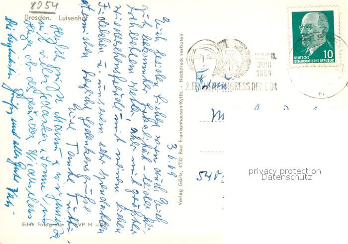 73742117 DRESDEN Elbe Hotel Luisenhof Gastraeume postalisch gelaufen Erhaltung siehe scans [WerneD78] alte Postkarte Wern Katcode 11110014262000