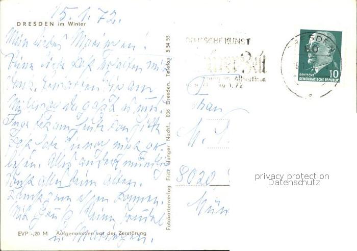 72508813 alte Postkarte DRESDEN Elbe im Winter Kuppel Dresdner Frauenkirche postalisch gelaufen Erhaltung siehe scans KatCode: 11110014262000