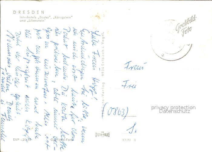 72090492 alte Postkarte DRESDEN Elbe Interhotel Bastei Koenigstein und Lilienstein postalisch gelaufen Erhaltung siehe scans KatCode: 11110014262000