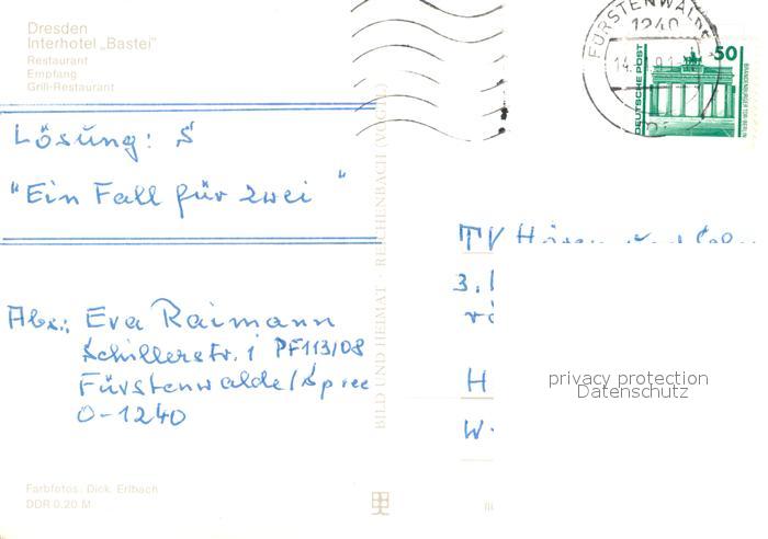 73652464 DRESDEN Elbe Interhotel Bastei Restaurant Empfang Grill-Restaurant postalisch gelaufen Erhaltung siehe scans [FriedD77] alte Postkarte Frie Katcode 11110014262000