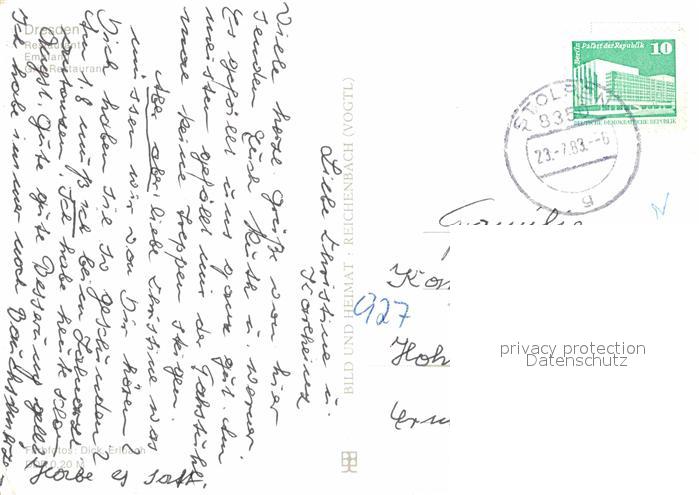 72796550 alte Postkarte DRESDEN Elbe Interhotel Bastei Restaurant Empfang postalisch gelaufen Erhaltung siehe scans [FriedD77] KatCode: 11110014262000