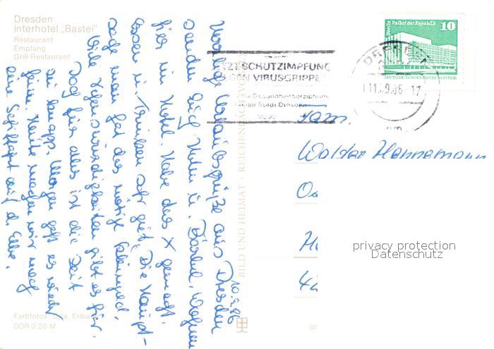 72986692 alte Postkarte DRESDEN Elbe Interhotel Bastei Restaurant postalisch gelaufen Erhaltung siehe scans [LiesaD40] KatCode: 11110014262000