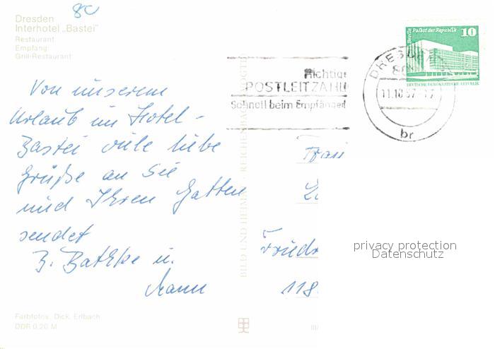 72849433 alte Postkarte DRESDEN Elbe Interhotel Bastei postalisch gelaufen Erhaltung siehe scans [KathaD81] KatCode: 11110014262000
