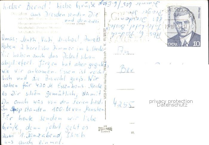 72074599 alte Postkarte DRESDEN Elbe Interhotel Prager Strasse postalisch gelaufen Erhaltung siehe scans KatCode: 11110014262000
