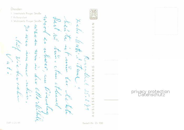 72631399 DRESDEN Elbe Interhotel Prager Strasse Kulturpalast postalisch nicht gelaufen Erhaltung siehe scans [LiesaD40] KatCode: 11110014262000