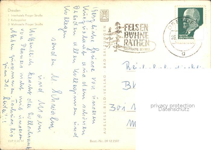 72051080 alte Postkarte DRESDEN Elbe Interhotel Prager Strasse Kulturpalast Wohnzeile Prager Strasse postalisch gelaufen Erhaltung siehe scans KatCode: 11110014262000