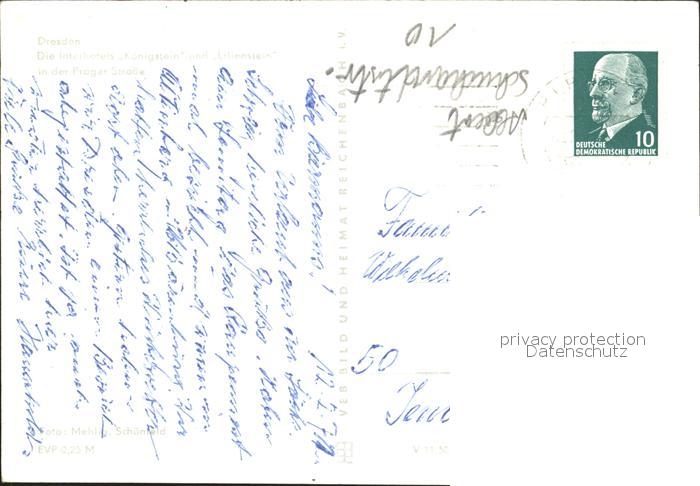 72183049 alte Postkarte DRESDEN Elbe Interhotels Koenigstein und Lilienstein Prager Strasse postalisch gelaufen Erhaltung siehe scans KatCode: 11110014262000