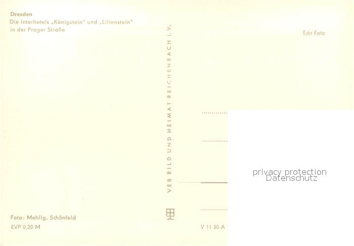 72986367 DRESDEN Elbe Interhotels Koenigstein und Lilienstein Prager Strasse Wasserspiele postalisch nicht gelaufen Erhaltung siehe scans [FriedD77] KatCode: 11110014262000