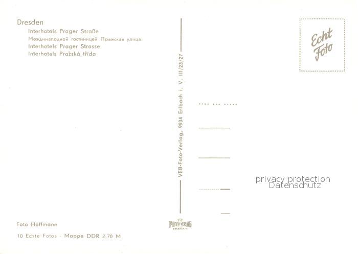 73142047 DRESDEN Elbe Interhotels Prager Strasse postalisch nicht gelaufen Erhaltung siehe scans [FriedD77] KatCode: 11110014262000