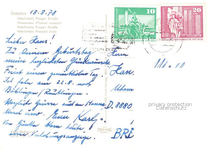 73036595 alte Postkarte DRESDEN Elbe Interhotels Prager Strasse postalisch gelaufen Erhaltung siehe scans [KathaD81] KatCode: 11110014262000