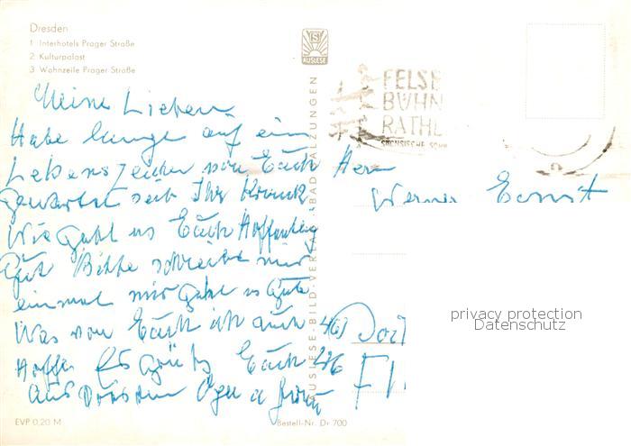 73833788 Dresden Elbe Interhotels Prager Strasse Kulturpalast Wohnzeile Prager Strasse postalisch gelaufen Erhaltung siehe scans [FriedD77] alte Postkarte Frie Katcode 11110014262000