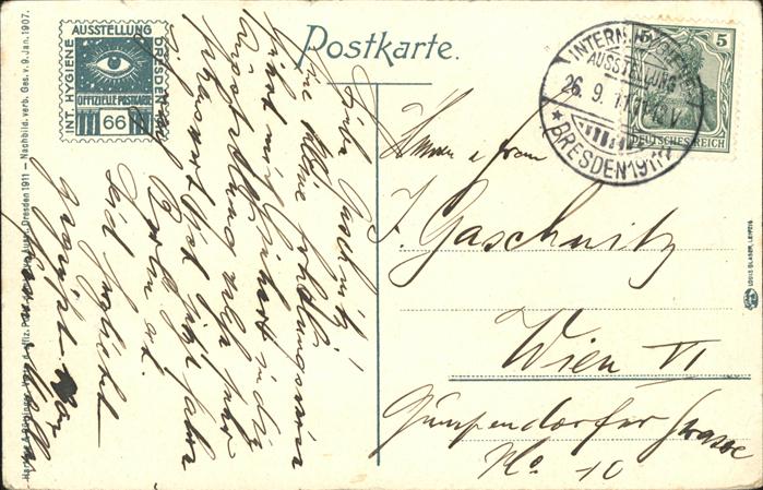 41223804 DRESDEN Elbe Internationale Hygiene Ausstellung Hauptpromenadenplatz postalisch gelaufen Alte Ansichtskarte Postkarte alte Postkarte Elvi Katcode 11110014262000