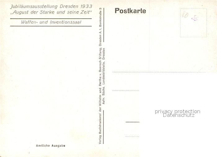 43497070 DRESDEN Elbe Jubil?umsausstellung August der Starke und seine Zeit Waffen- und Inventionssaal postalisch nicht gelaufen Erhaltung siehe scans [LiesaD40] Lies Katcode 11110014262000