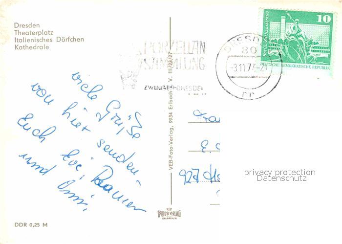 72702268 alte Postkarte DRESDEN Elbe Kathedrale Theaterplatz postalisch gelaufen Erhaltung siehe scans [AndreD76] KatCode: 11110014262000