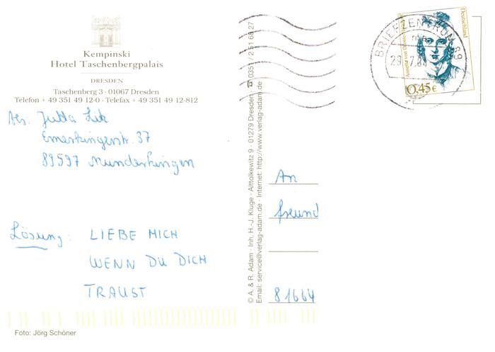 73891350 Dresden Elbe Kempinski Hotel Taschenbergpalais postalisch gelaufen Erhaltung siehe scans [WerneD78] alte Postkarte Wern Katcode 11110014262000