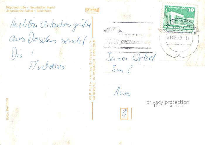 72616681 alte Postkarte DRESDEN Elbe Koepckestr Neustaedter Markt Japanisches Palais Blockhaus postalisch gelaufen Erhaltung siehe scans [WerneD78] KatCode: 11110014262000