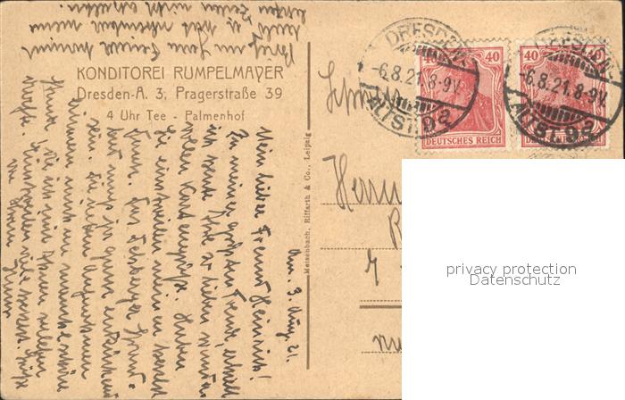 41992803 DRESDEN Elbe Konditorei Rumpelmeyer postalisch gelaufen Alte Ansichtskarte Postkarte alte Postkarte Matt Katcode 11110014262000