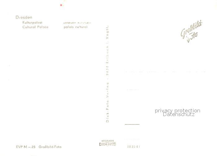 73097078 DRESDEN Elbe Kulturpalast postalisch nicht gelaufen Erhaltung siehe scans [KathaD81] KatCode: 11110014262000