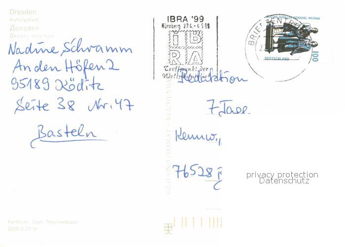 72891154 alte Postkarte DRESDEN Elbe Kulturpalast postalisch gelaufen Erhaltung siehe scans [WerneD78] KatCode: 11110014262000