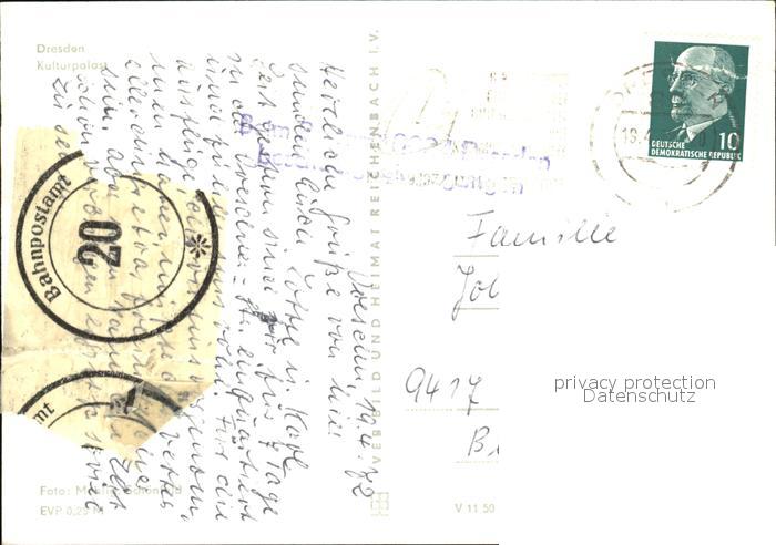 72396655 alte Postkarte DRESDEN Elbe Kulturpalast postalisch gelaufen Erhaltung siehe scans KatCode: 11110014262000