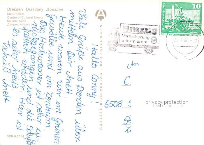 73127618 alte Postkarte DRESDEN Elbe Kulturpalast postalisch gelaufen Erhaltung siehe scans [KathaD81] KatCode: 11110014262000