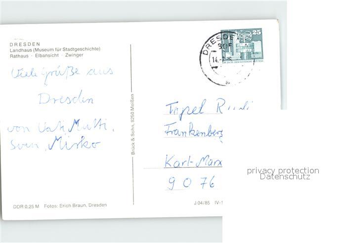 72384107 alte Postkarte DRESDEN Elbe Landhaus Rathaus Zwinger postalisch gelaufen Erhaltung siehe scans KatCode: 11110014262000