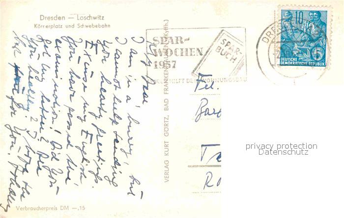 72794243 alte Postkarte DRESDEN Elbe Loschwitz Koerrerplatz und Schwebebahn postalisch gelaufen Erhaltung siehe scans [LiesaD40] KatCode: 11110014262000