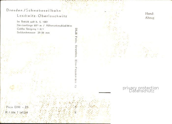 72183054 DRESDEN Elbe Loschwitz Schwebeseilbahn postalisch nicht gelaufen Erhaltung siehe scans KatCode: 11110014262000