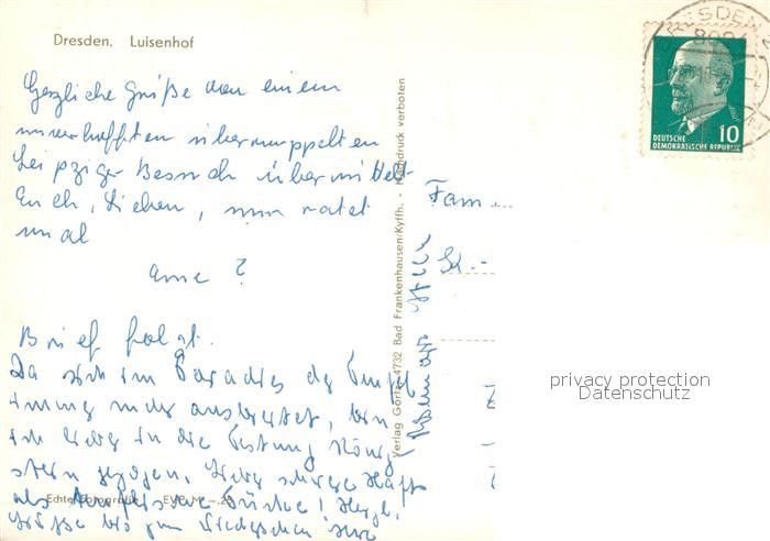 73739142 DRESDEN Elbe Luisenhof Gastraeume postalisch gelaufen Erhaltung siehe scans [FriedD77] alte Postkarte Frie Katcode 11110014262000