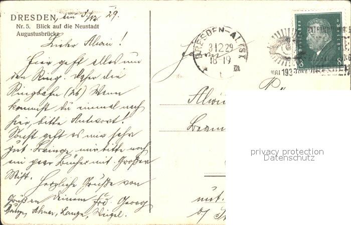 71924484 alte Postkarte DRESDEN Elbe mit Augustusbruecke Dampfer postalisch gelaufen Erhaltung siehe scans KatCode: 11110014262000