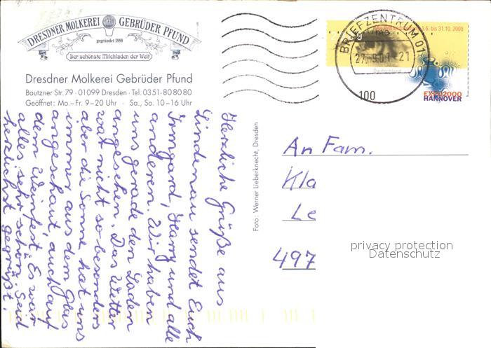 72587802 alte Postkarte DRESDEN Elbe Molkerei Gebrueder Pfund postalisch gelaufen Erhaltung siehe scans [LiesaD40] KatCode: 11110014262000