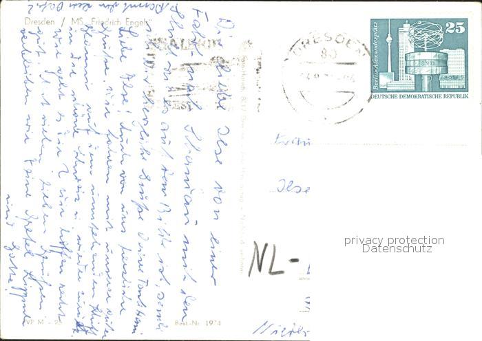 72120401 alte Postkarte DRESDEN Elbe MS Friedrich Engels postalisch gelaufen Erhaltung siehe scans KatCode: 11110014262000