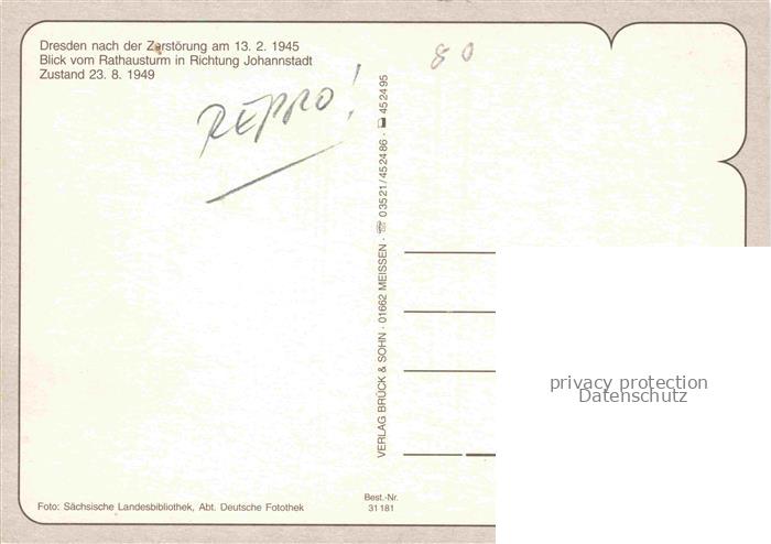 74010166 DRESDEN Elbe nach Zerstoerung 1945 Blick vom Rathausturm postalisch nicht gelaufen Reprokarte Erhaltung siehe scans [WerneD78] KatCode: 11110014262000