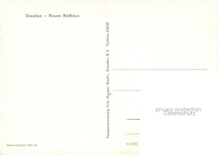 73750921 DRESDEN Elbe Neues Rathaus postalisch nicht gelaufen Erhaltung siehe scans [WerneD78] Wern Katcode 11110014262000