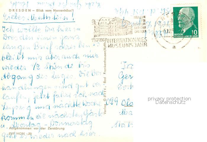 73032692 alte Postkarte DRESDEN Elbe Panorama Blick vom Narrenhaeusl postalisch gelaufen Erhaltung siehe scans [KathaD81] KatCode: 11110014262000
