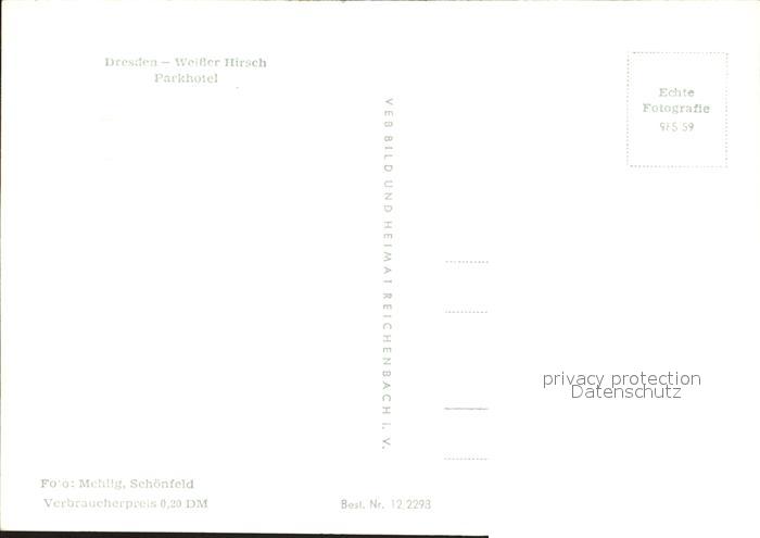 72313263 DRESDEN Elbe Parhotel Weisser-Hirsch postalisch nicht gelaufen Erhaltung siehe scans KatCode: 11110014262000