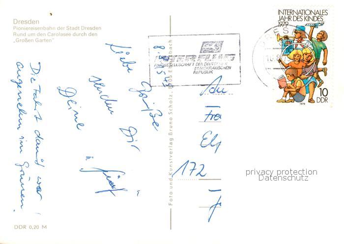 73085384 alte Postkarte DRESDEN Elbe Pioniereisenbahn Carolasee Grosser Garten postalisch gelaufen Erhaltung siehe scans [FriedD77] KatCode: 11110014262000