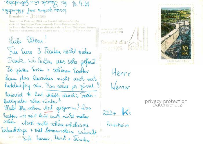 72646271 alte Postkarte DRESDEN Elbe Pirnaischer Platz Ernst Thaelmann Strasse postalisch gelaufen Erhaltung siehe scans [WerneD78] KatCode: 11110014262000