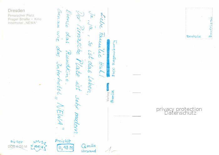 72919065 DRESDEN Elbe Pirnaischer Platz Prager-Strasse Kino Interhotel-Newa postalisch nicht gelaufen Erhaltung siehe scans [LiesaD40] KatCode: 11110014262000