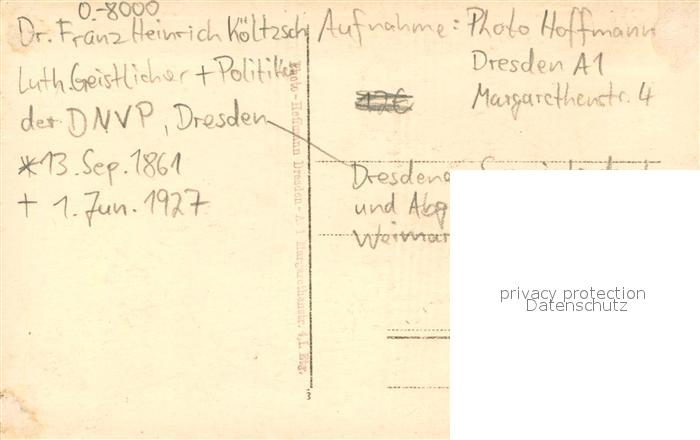 73749389 DRESDEN Elbe Portrait Dr Franz Heinrich Koeltzsch postalisch nicht gelaufen Erhaltung siehe scans [WerneD78] Wern Katcode 11110014262000